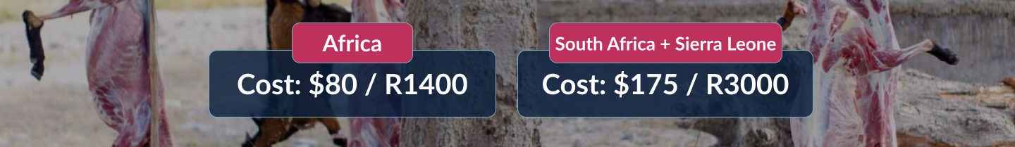 You can empower an Imam and his community through your Qurbani, facilitated by Imams in South Africa, Zimbabwe, Lesotho, Swaziland, Mozambique, Malawi, Namibia, Botswana, Zambia, Tanzania, Uganda, Rwanda, Kenya, Sierra Leone and Nigeria.